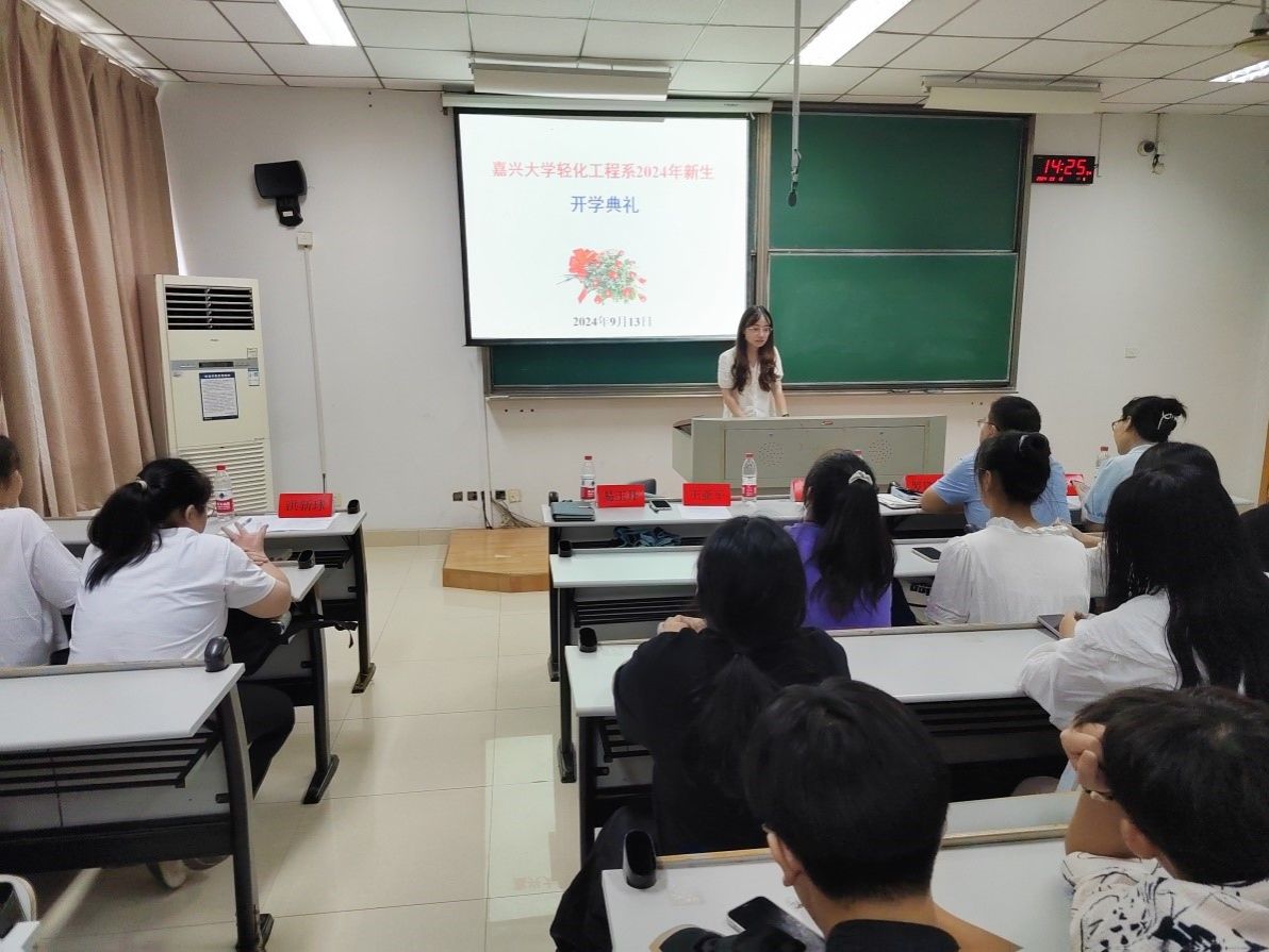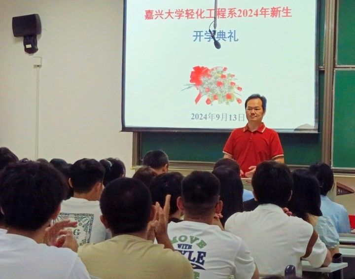 新生开学典礼由轻化241、242班主任洪新球老师主持。在开学典礼中,张彩丹老师详细介绍了轻化工程专业情况及学生未来发展方向。随后,轻化工程系教师对新生的大学生活提出了建议,新生班主任助理轻化221班于怡婧同学、轻化231班施悦同学、轻化221班徐瑞翔同学先后进行了发言,2013级优秀校友、今年刚入职我系的新教师易玉丹博士分享了她的学习经验,轻化242班尚佳妮同学、轻化(专升本)241班蒋丽亚同学代表新生发言。最后,系主任罗建勋教授对新生的发展提出了殷切希望,要求同学们能够树立明确目标,勇于探索,为了梦想而不断努力奋斗。