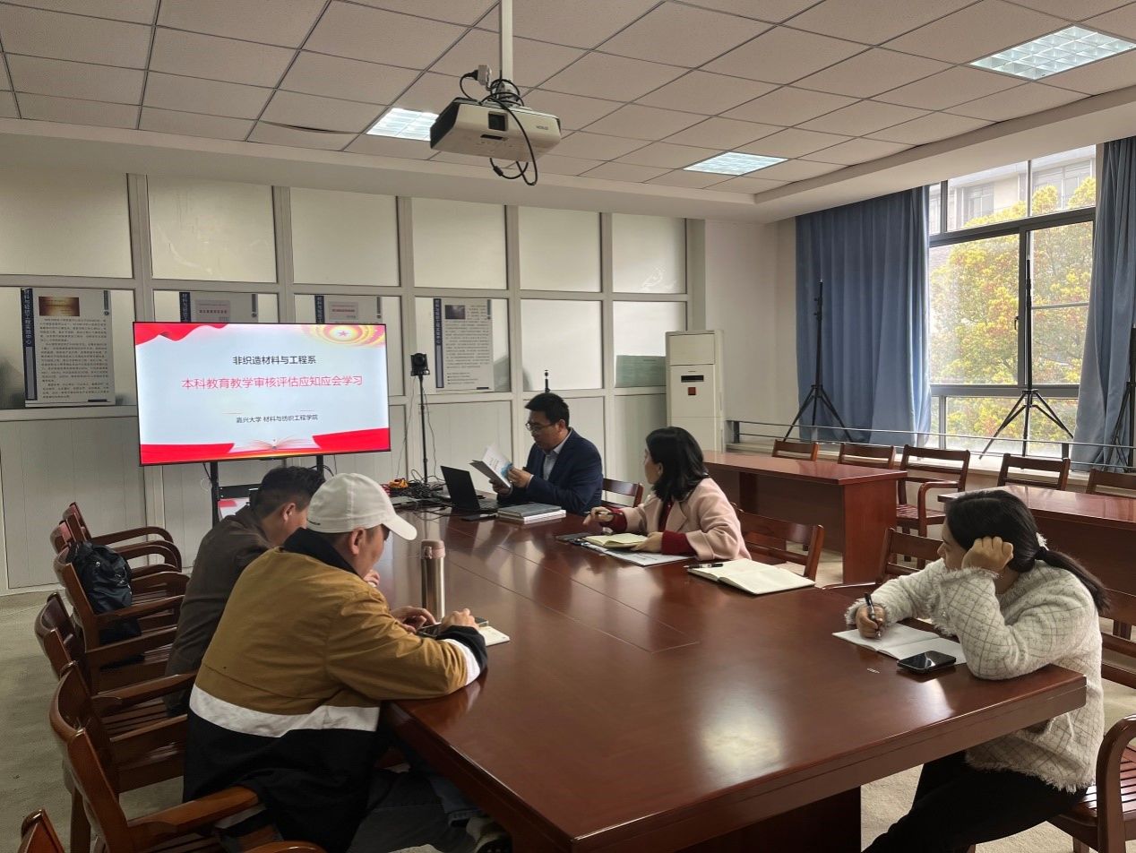 3月28日,非织造材料与工程系召开本科教育教学审核评估应知应会学习会。会议由非织系主任韩万里支持,非织系教师参会。