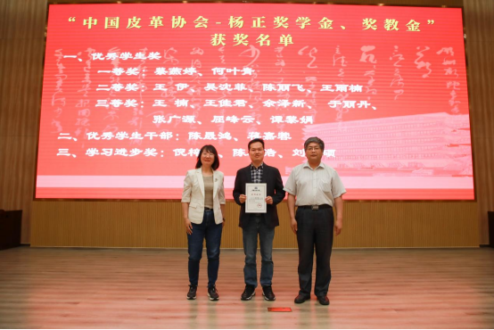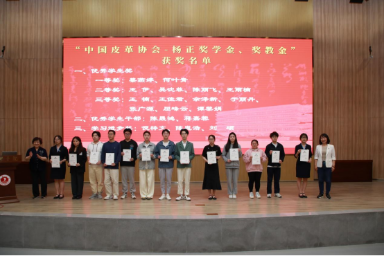 轻化工程专业近年来取得的育人成果表示充分肯定和高度赞赏,对中国皮革协会向我院轻化工程专业提供奖教金表示感谢,也希望我院轻化工程专业为行业培养更多的优秀人才。张燕秘书长也充分肯定了近年来学院在人才培养方面取得的优异成绩,她认为我院轻化工程系实施的育人理念必然会取得优异的育人成果,并对全体学生提出勉励和要求,希望同学们能再接再厉,更加努力提升专业知识和综合素质,成长为对行业发展有用的复合型人才。
