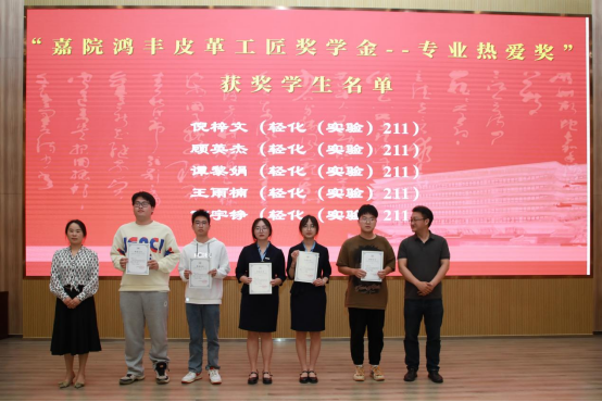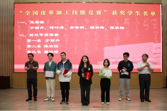 首先,我院易洪雷院长对各位领导和嘉宾拨冗出席此次颁奖典礼表示感谢,简要介绍了我院轻化工程专业的办学历史及在教学、科研及社会服务等方面取得的成绩,对中国皮革协会、浙江省皮革行业协会和行业国内外知名企业多年来对嘉兴学院的支持表示衷心的感谢。夏敏经理对获奖师生表示祝贺,对学生的实践能力表示高度赞赏,希望获奖学生能够为自己的未来继续努力,不断前行。随后,各位领导分别为获奖师生颁奖,获奖师生代表洪新球、蔡燕婷、于丽丹、陆涛分别发言,感谢中国皮革协会和各爱心企业的大力支持,感谢学院、学系的精心培养。