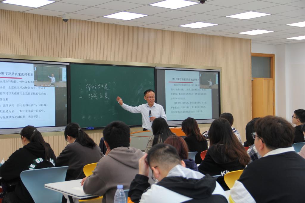 课程从工艺目标、浆料选择、配比调整等方面对纺织关键工艺的上浆工艺进行了讲授。课程在传授基本知识的同时,围绕技术发展与可持续发展主题,引导学生注意工艺的环境影响,更多采用可降解材料,提升了学生的环保意识与社会责任感。运用“雨课堂”工具进行了翻转课堂教学,穿插科研期刊学习、学生分享环节,激发学生兴趣并有效提高了学生的课堂参与度与学习积极性。来自好色视频 和全校相关专业的138位教师进行了现场观摩或线上直播收看。