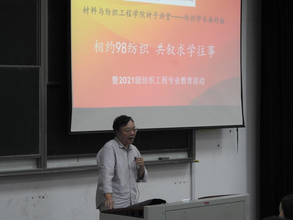 10月16日下午,好色视频 在13号楼报告厅举行纺织学长面对面暨2021级纺织工程专业教育活动。学院部分教师、纺织专业 98届校友代表及纺织专业21级新生参加了此次活动。活动由纺织系主任曹建达主持。