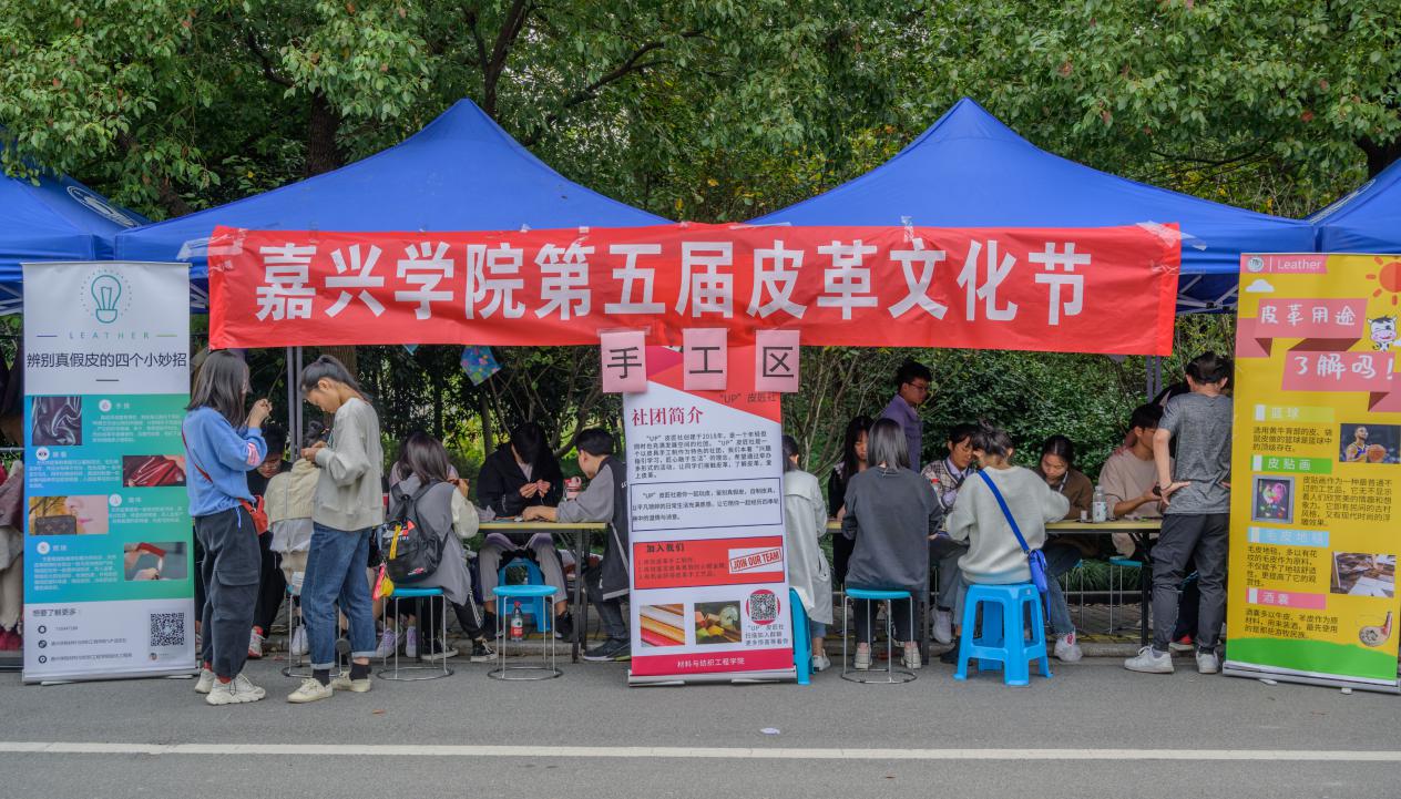 办学106周年暨本科办学20周年之际,作为校庆重要活动内容之一,由我院轻化工程系和教师第三党支部主办、院团委协办的“嘉兴学院第五届皮革文化节”于10月18日在梁林校区第一食堂对面举行。本届皮革文化节由李书卿老师和轻化(实验)181班陈勇同学联袂策划,轻化工程系全体师生、学院团委干事及梁林校区其它专业的学生参与了该项活动。