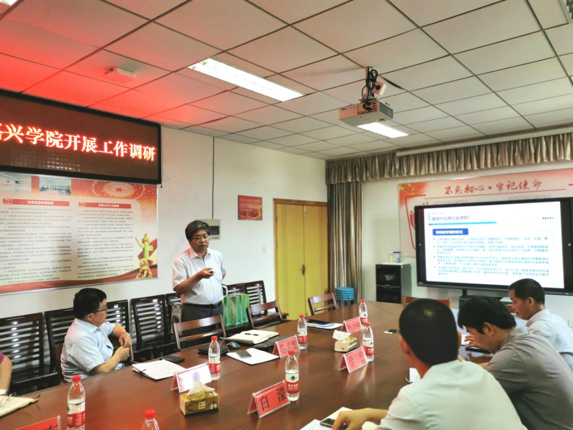 易洪雷以“深化产教融合,培养复合型创新人才,助力地方经济发展”为题,从“为什么要组建现代纺织技术行业学院”“建设什么样的现代纺织技术行业学院”“为什么选择与嘉兴学院共建现代纺织技术行业学院”等三个方面向专家服务团汇报了组建中国纺织工程学会-嘉兴学院现代纺织技术行业学院的构想。