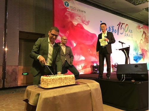 汤普勒德国总裁Hein Vugs先生与汤普勒中国联席总裁张建维先生、Linzoain Acedo Joaquin先生共致感谢辞,感谢多年来广大客户、代理商和合作伙伴的支持和配合。随后,他们亲自切开蛋糕并与客人们共享公司盛宴。