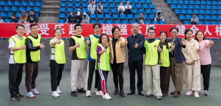 教工组趣味运动会成为赛场另一大亮点。在“毛毛虫接力”“巨人脚步”等集体项目中,材纺学院教职工们步调一致、默契配合,在欢声笑语与激烈角逐中展现出课堂之外的活力与热情。最终,学院教职工团队凭借出色表现荣获教工组趣味运动会团体第二名,充分展现了教职工队伍的凝聚力与蓬勃朝气。