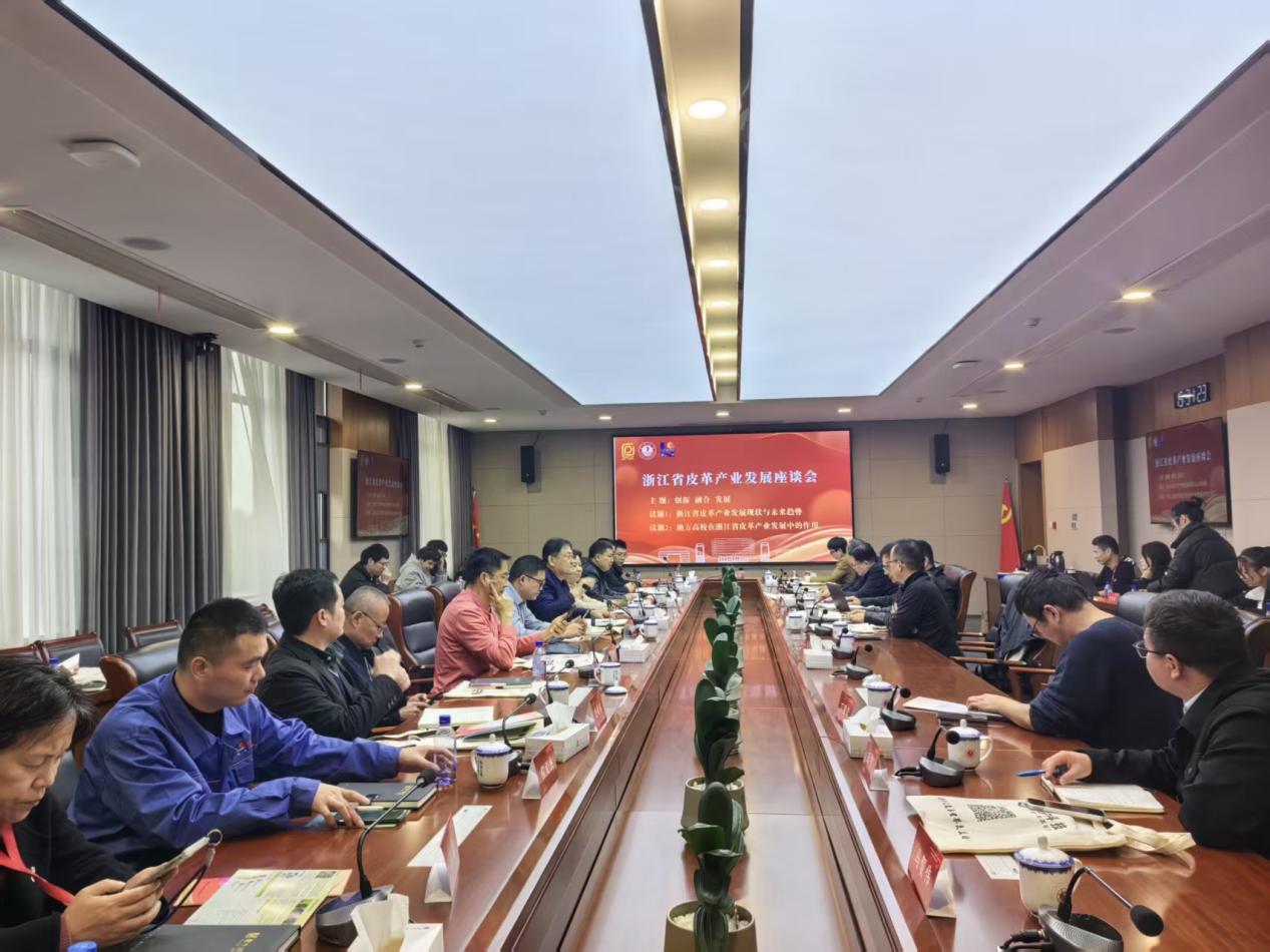 随后举行了以“创新、融合、发展”为主题的浙江省皮革产业发展座谈会。与会专家围绕产业发展现状、未来趋势及高校作用展开交流,并就行业“十五五”规划提出建议。