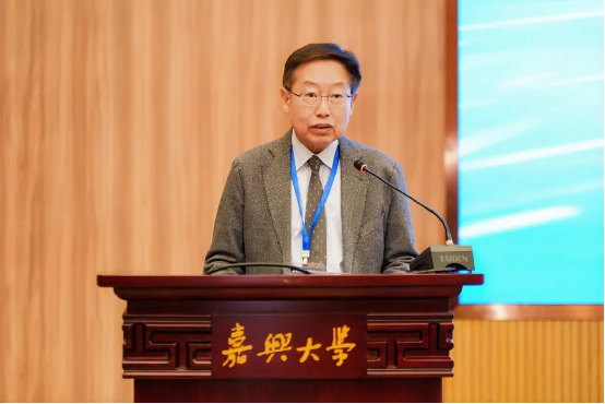 洪淳亨院士致辞并以《Status and Prospect of Multifunctional Nanocomposites》为题作主旨报告。他指出,健康纤维电子作为健康医学、柔性电子与智能纺织等多学科交叉融合领域,代表了科技革命与产业变革的前沿。在报告中,他围绕多功能纳米复合材料的制备工艺、微观结构与性能调控以及应用进展,系统介绍了该领域的最新研究成果。报告重点阐述了不同构筑方式对材料多功能集成与性能提升的影响,并展示了其在高性能纤维电子等方向的应用潜力,为相关材料与器件的发展提供了重要支撑。