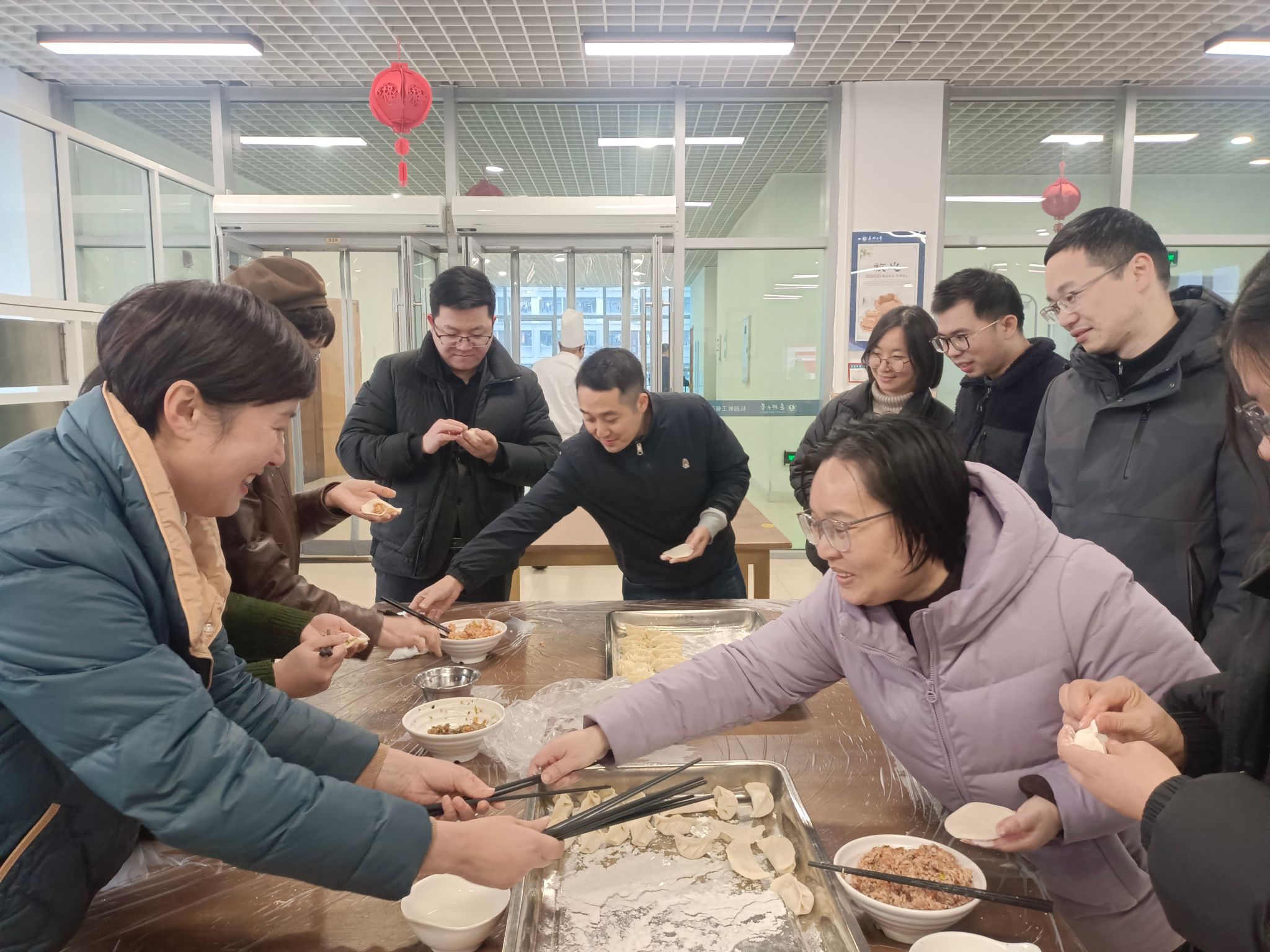 学院党委副书记(主持工作)沈加加代表学院致辞,回顾2025,感谢全体教职工在教学与科研岗位上的辛勤耕耘与默默奉献,展望2026,激励全院师生凝心聚力、开拓创新,共同书写学院高质量发展的新篇章。随后,教师们一同动手体验包饺子的乐趣。不少女教师兴致勃勃地擀制面皮,在传统手工制作中感受亲切与成就感。大家一边交流协作,一边分享心得,现场气氛温馨热烈。活动最后,全体教职工共同品尝亲手包制的饺子及其他美食,在温馨融洽的互动中进一步加深了情感,也为本次活动画上了圆满句号。