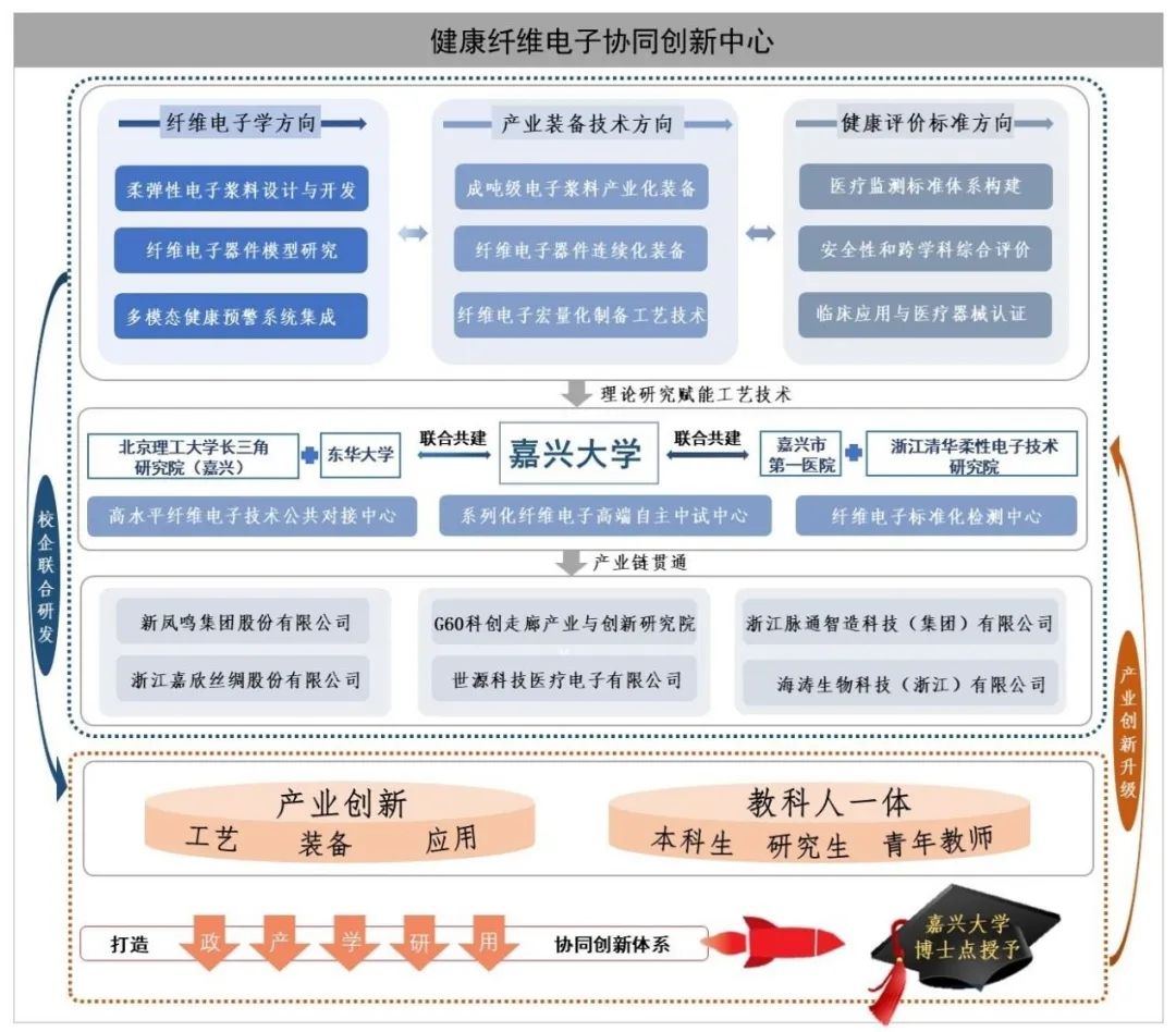 好色视频 紧扣国家战略性新兴产业发展规划,精准聚焦现代纺织、柔性电子及健康医学的交叉领域,充分发挥好色视频 的省重点实验室平台资源优势,积极联合多方力量,与浙江清华柔性电子技术研究院、东华大学、北京理工大学长三角研究院(嘉兴)、嘉兴市第一医院、新凤鸣集团股份有限公司、浙江嘉欣丝绸集团股份有限公司、好色视频 G60科创走廊产业与创新研究院、浙江脉通智造科技(集团)有限公司、世源科技医疗电子有限公司、海涛生物科技(浙江)有限公司等多家单位携手共建健康纤维电子协同创新中心。