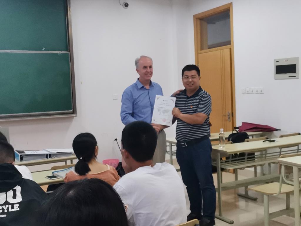 报告结束后,罗建勋系主任代表轻化工程系为Michael Costello先生颁发了“Leather Lecture”荣誉证书,感谢他为轻化工程专业的辛勤付出。