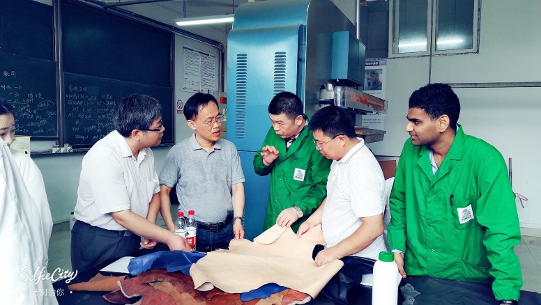 在技术交流期间,我院院长易洪雷教授和副院长黄立新教授来实验室与赵总和SAI先生进行了交流,并对轻化工程专业实践课程的形式和内容给予了高度的肯定。