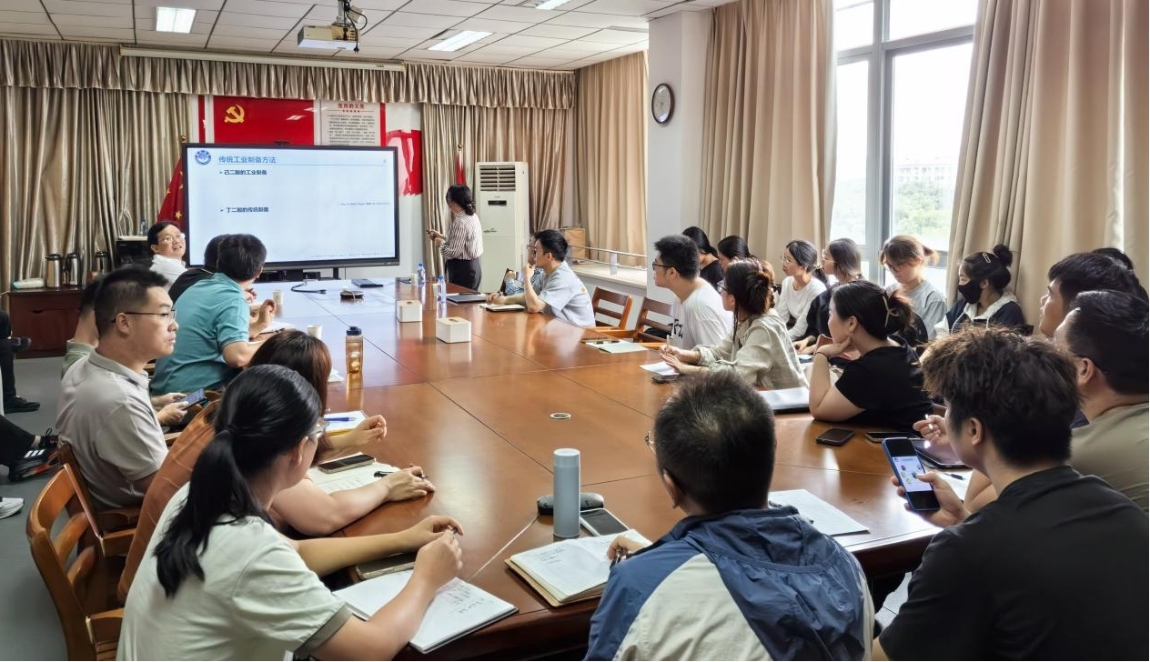 讲座中,杨维冉教授围绕生物质可再生能源的高效转化与绿色化学品合成的前沿课题,系统介绍了其团队在生物基二元羧酸制备方面的最新研究进展。杨教授重点讲解了羰基化反应中催化剂的设计思路、反应机理的深入解析以及关键中间体的定向调控策略,并展示了部分实验成果在生物基聚合物合成中的初步应用。她强调,该研究不仅为生物质高值化利用提供了新思路,也为实现“双碳”目标贡献了化学力量。