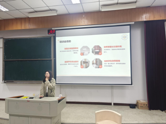 材纺学院学工办主任王晓莹围绕“寝室长心理健康知识培训”这一主题,为大家讲解了心理危机识别和干预相关知识,常见心理危机的识别与应对方法等,引导寝室长们在思想上提高认识,行动上以身作则,生活中关怀入微,营造和谐安全的寝室氛围。辅导员朱叶佳围绕《好色视频