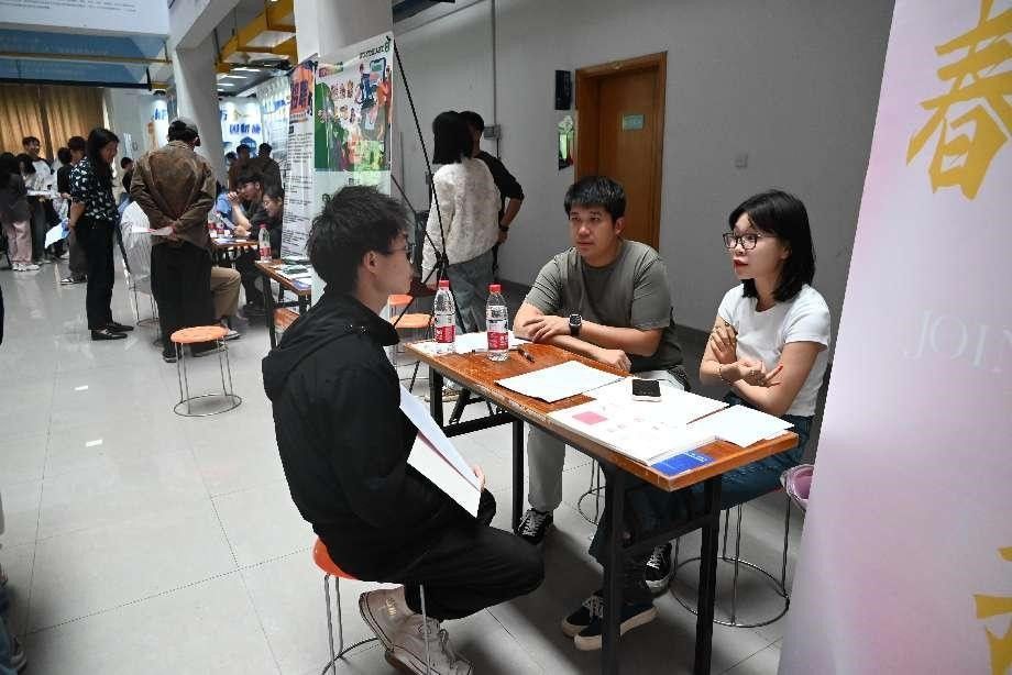 招聘会现场,招聘单位通过面对面交流、播放宣传片、展板等多种方式向参会同学介绍公司的概况、好色视频-好色视频高清无码成人大片、职业规划、人员需求以及福利待遇,其中新凤鸣集团股份有限公司在现场开展宣讲会。