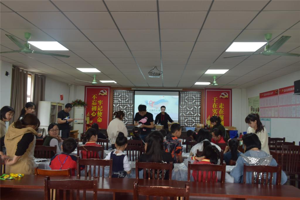 4月27日下午14:30,材纺学院“青春人‘材’”志愿服务队7名志愿者在嘉兴市新家园社区面向10对亲子家庭开办手工扎染小课堂。