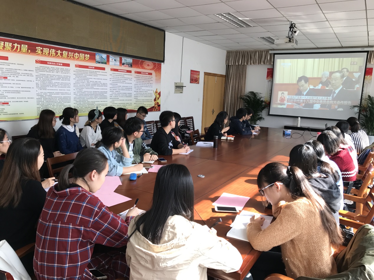 团委组织学生干部、团员代表、学生党员代表共30人于闻道楼419会议室集中观看中国共产党第十九次全国代表大会直播。