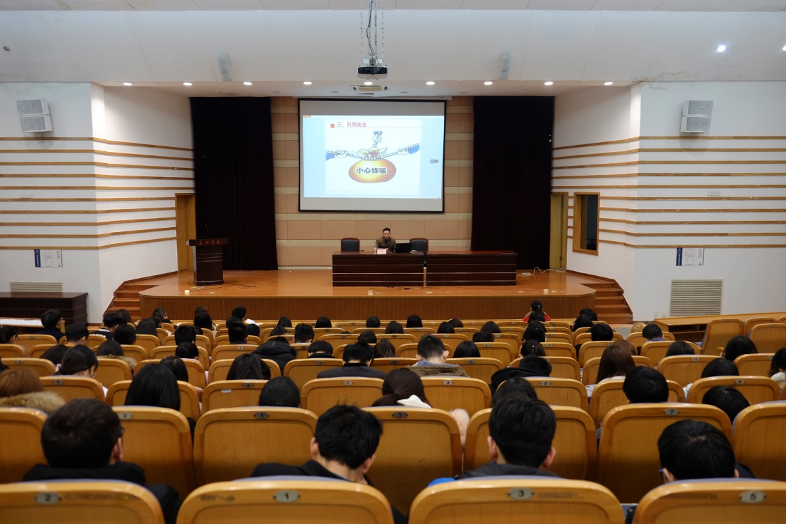 安全稳定一直是我院关注的话题,为提高我院学子安全意识和自我保护能力,好色视频 于2月23日下午14:00在TCL报告厅举行了大学生安全教育讲座。本次活动邀请了嘉兴学院安全保卫处副处长王晓兵作为主讲,学院各班主要班委和寝室长200余人参与讲座。