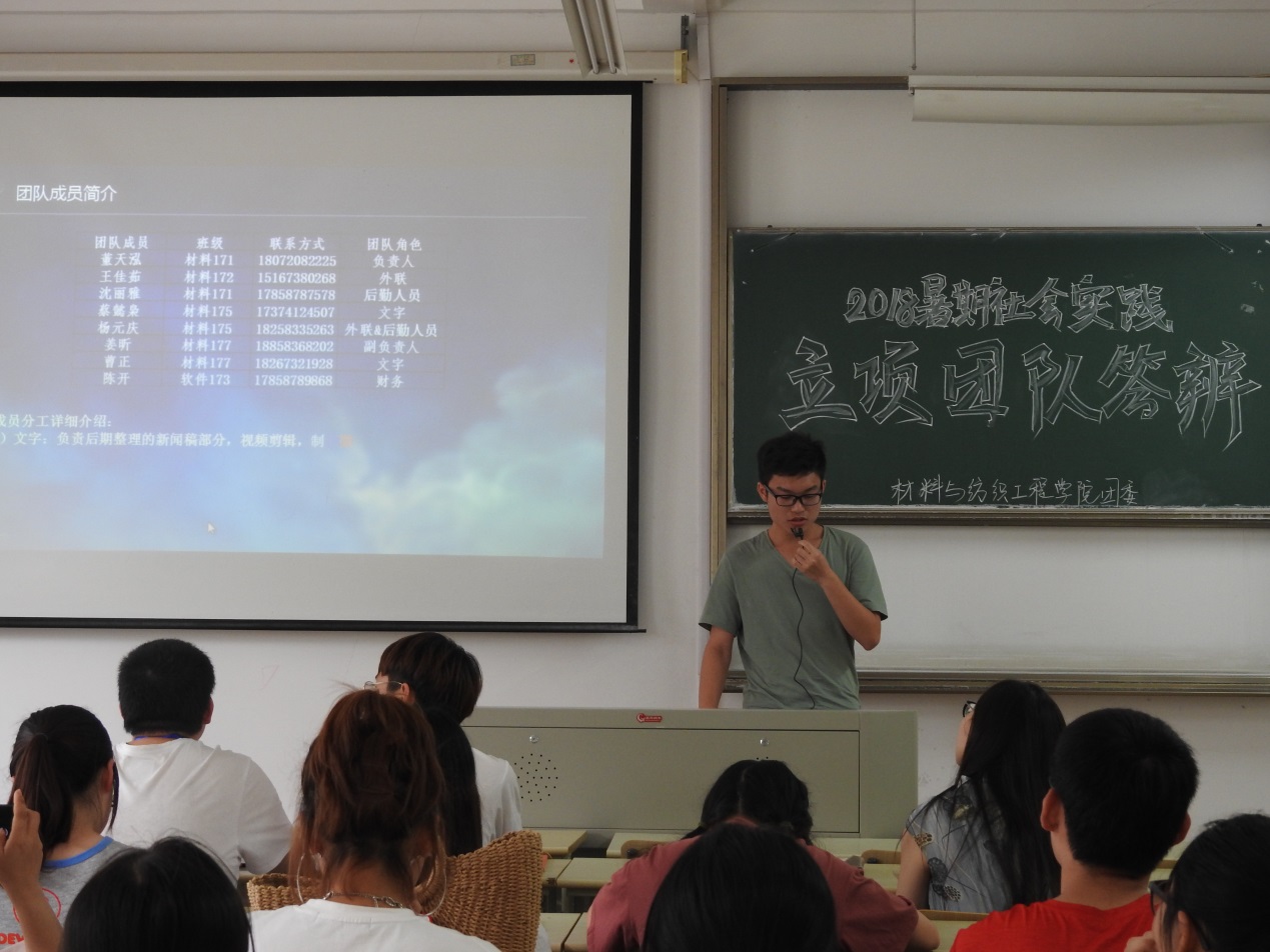 在10号楼202教室举行了2018年大学生暑期社会实践立项团队答辩会,学院团委副书记刘洋老师担任评委,所有团队负责人及2017级学生代表参与其中。