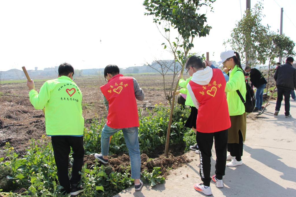 高材162团支部15名志愿者赴西塘镇与当地志愿者一起进行了以 “百团添万绿,保卫母亲河”为主题的植树志愿者活动。