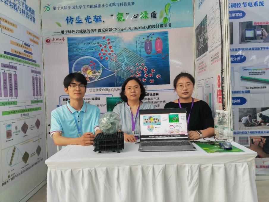 团队作品聚焦国家“双碳”战略目标,以绿色合成氨技术为核心,设计了一种高效、低能耗的仿生光催化微反应器。该技术通过CN@g-C3N4/Bi2MoO6复合材料的创新应用,模拟自然光合作用原理,显著提升光能利用效率,为传统高耗能合成氨工艺提供了可持续替代方案,具有重要的环保价值与应用前景。学院始终秉持“以赛促学、以赛促创、以赛促研”的理念,将学科竞赛作为培养创新型人才的重要抓手。此次获奖不仅是学生团队刻苦钻研的成果,更是学院深化教育教学改革、推进产学研融合的生动体现。未来,学院将继续优化创新生态,为学子搭建更广阔的实践平台,助力更多青年在服务国家战略中成长成才!