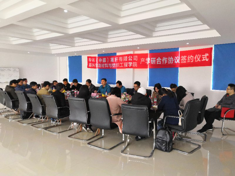华祥高纤成立于2010年,公司生产研发多元化、差异化、高附加值化纤产品,是化纤行业中通过产业转型升级实现“制造强国”战略的典型代表。支部党员教师首先参观了公司POY/FDY无人生产线、落丝机器人以及智能化丝饼包装生产设备等自动化生产线,实地了解公司发展现状和未来愿景。随后,企业领导与党员教师围绕聚酯涤纶产业发展方向,科研项目创新合作,人才培养与交流等方面进行了深度座谈,达成“功能纤维”党小组为华祥高纤提供技术服务,全体党员教师作为华祥高纤工程培训讲师提升员工工程能力等合作意向,并签订产学研合作协议。