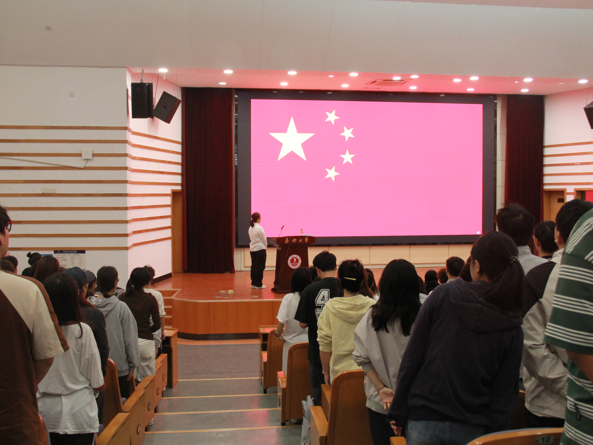 典礼伊始,全体人员起立行注目礼,奏唱中华人民共和国国歌。