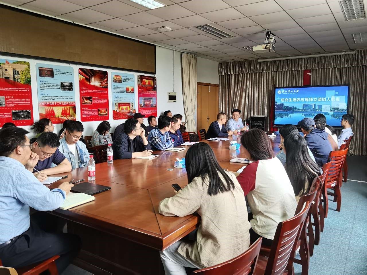 为了提高研究生导师素质,提升研究生培养质量,5月9日下午,我院特邀浙江理工大学崔灿教授为我院研究生导师做培训和指导,兰平教授主持培训会,学院已有研究生导师和今年计划申请硕导的所有老师参加了培训。崔教授在浙江理工大学从事研究生招生、培养等各项研究生管理工作多年,拥有丰富的管理经验。培训会上,崔教授首先解读国家对研究生教育发展的有关精神和相关文件,接着通过多个真实案例来向在座导师悉心传授经验,从多方面指导各位导师做好立德树人工作,在对研究生进行学业指导的同时注重人文关怀,同时解答了导师的相关疑问,现场气氛热烈。