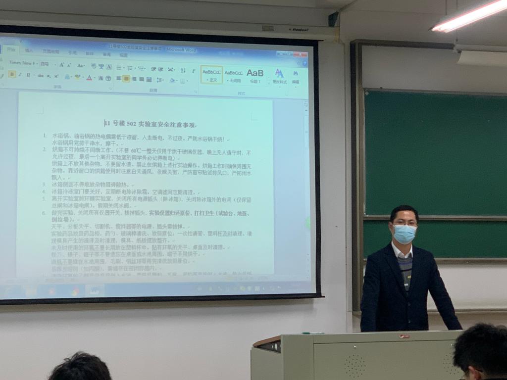 3月25日晚,材纺学院高材教工党支部党员教师利用业余时间组织学生进行实验室安全培训,为科研工作保驾护航。在学科实验室做实验的20多名同学参会。
