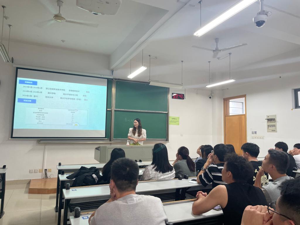 8月24日上午,高材系主任张葵花教授主持并讲授高材专升本的大一新生始业教育。张葵花老师就目前大一学生困惑的主要问题,即“进来学什么?”“出去做什么?”“这里学什么?”进行了分析解答。系支部书记、副主任沈小军教授参加并就新生如何规划学习生涯进行了指导。联陪研究生朱松青同学分享了她的考研经验。
