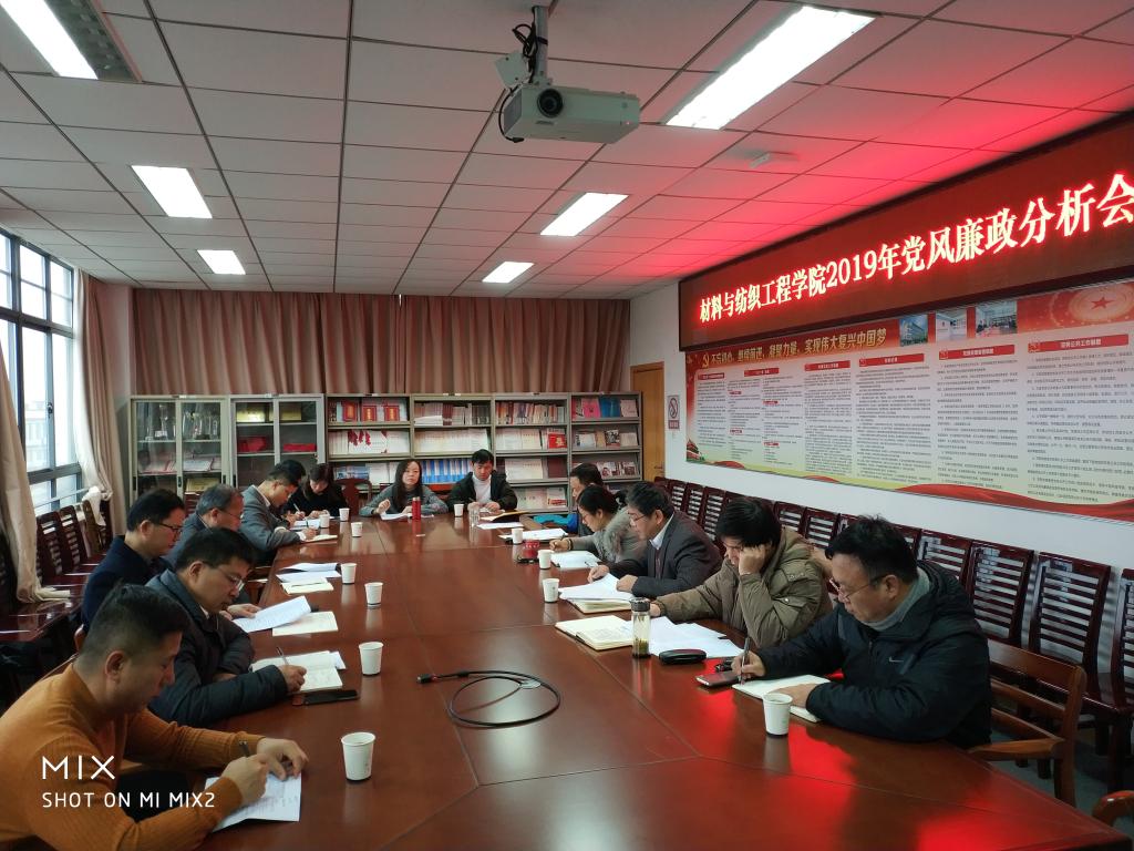 分析会由院党委书记易洪雷主持。易洪雷首先代表学院党委对2019年学院党风廉政建设、小微权力清单梳理情况作了汇报,对存在的问题进行了深入剖析,并提出整改意见和建议。领导班子成员就“一岗双责”履职情况进行了汇报,与会人员就教学运行、科研经费使用、实验耗材采购等作了交流和分析。