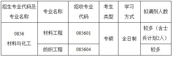 2.调剂考生第一志愿专业与调入专业相同相近,或初试科目与调入专业初试科目相同相近。本学位点接受调剂的第一志愿专业范围包括:材料与化工(0856)、材料科学与工程(08050773)、电子科学与技术(08090774)、信息与通信工程(0810)、计算机科学与技术(08120775)、化学工程与技术(0817)、纺织科学与工程(0821)、轻工技术与工程(0822)、环境科学与工程(08300776)、生物医学工程(08310777)、药学(078010071055)、食品科学与工程(0832)、软件工程(0835)、生物工程(0836)、纳米科学与工程(08770789)、电子信息(0854)、机械(08020855)、资源与环境(0857)、生物与医药(0860)、化学(0703)、生物学(0710)。